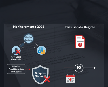 A Receita Federal agora monitora a regularidade fiscal não apenas do CNPJ, mas dos sócios majoritários. Se o sócio possui dívidas previdenciárias ou tributárias graves (em outros CNPJs ou no CPF), a empresa pode ser impedida de permanecer no Simples Nacional.